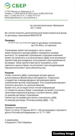 У відділеннях «Сбербанку» в різних регіонах Росії вкладникам відмовляють у виплаті відсотків за договорами інвестиційного страхування життя з фіксованою ставкою та гарантійним полісом. На всі запитання у «Сбербанку» відповідають просто: «Через санкції [після початку війни проти України] немає доступу до фінансових інструментів, у які банк вкладав ваші гроші».